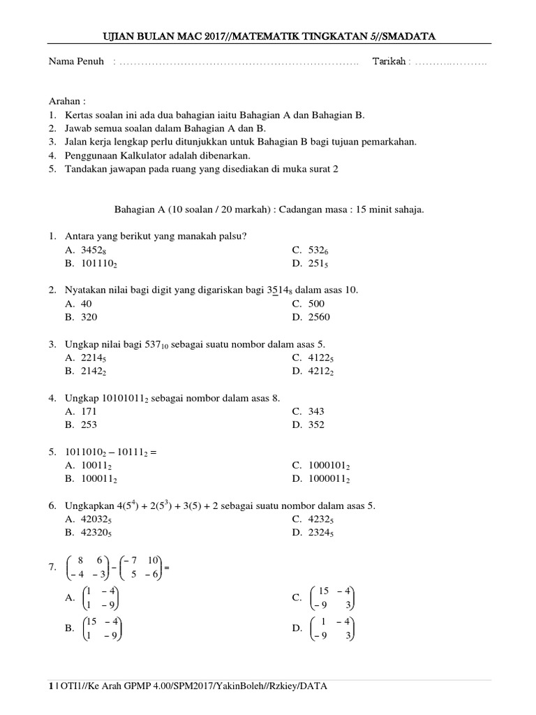 Ujian Bulan Mac 2017 Tingkatan 5 Pdf
